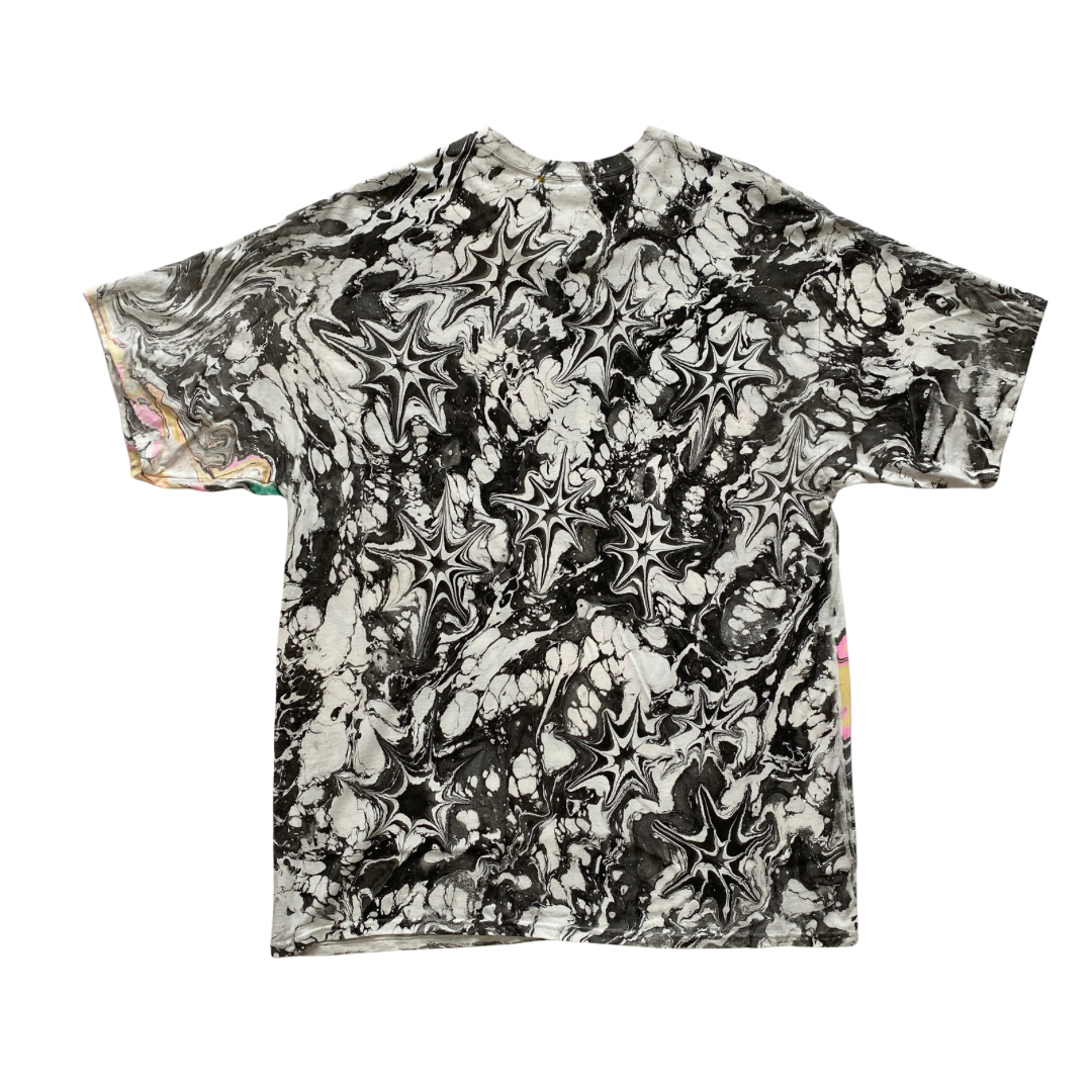 One-of-a-kind hand marbled artwork on unisex cotton T.