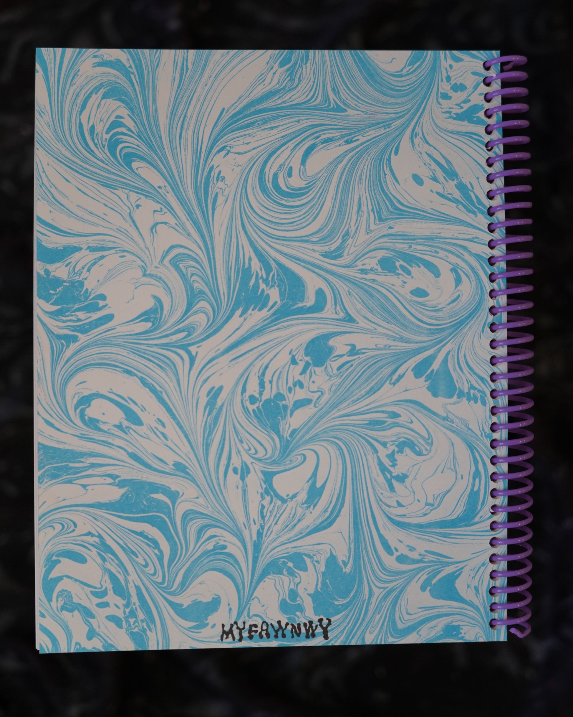 Spiral bound risograph printed notebook, measuring 7"X9". Contains 112 pages of beautiful blank 80lb paper, ready for all your ideas, drawings, feelings, dreams and lists! Hand printed and bound in NYC.