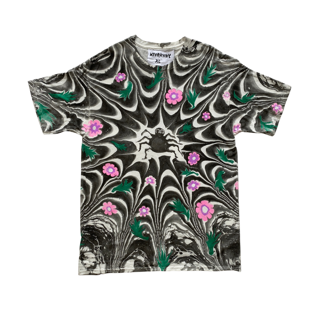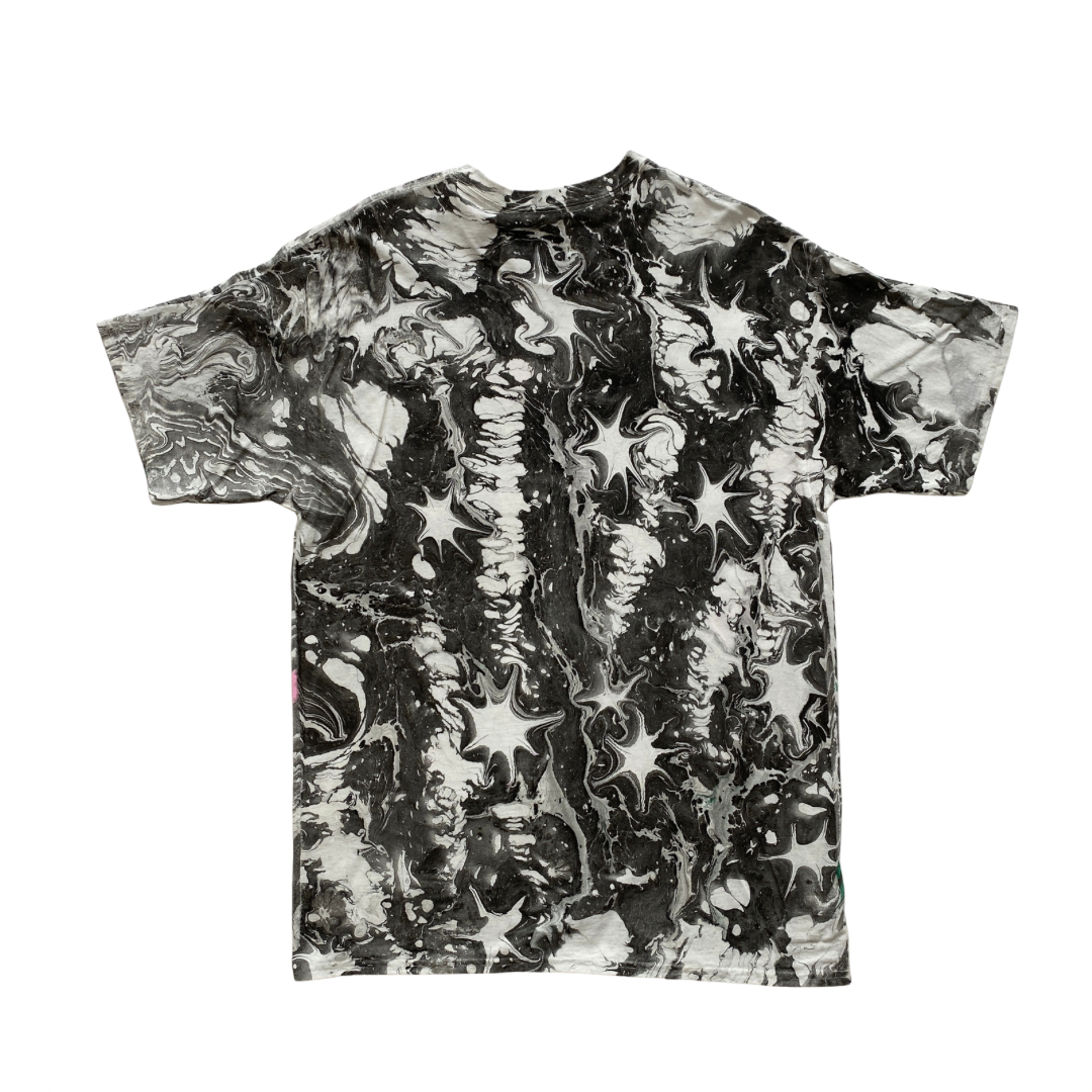 One-of-a-kind hand marbled artwork on unisex cotton T.