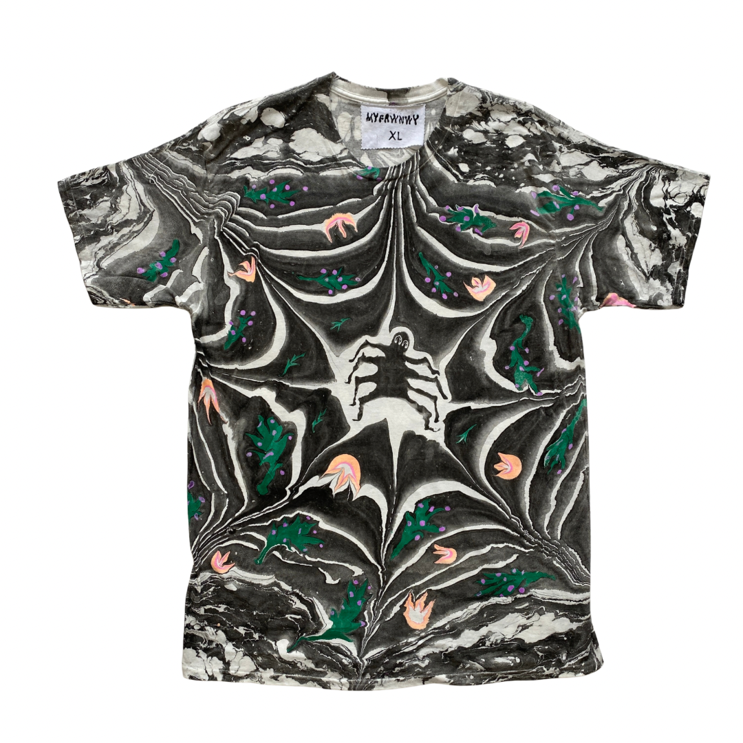 One-of-a-kind hand marbled artwork on unisex cotton T.