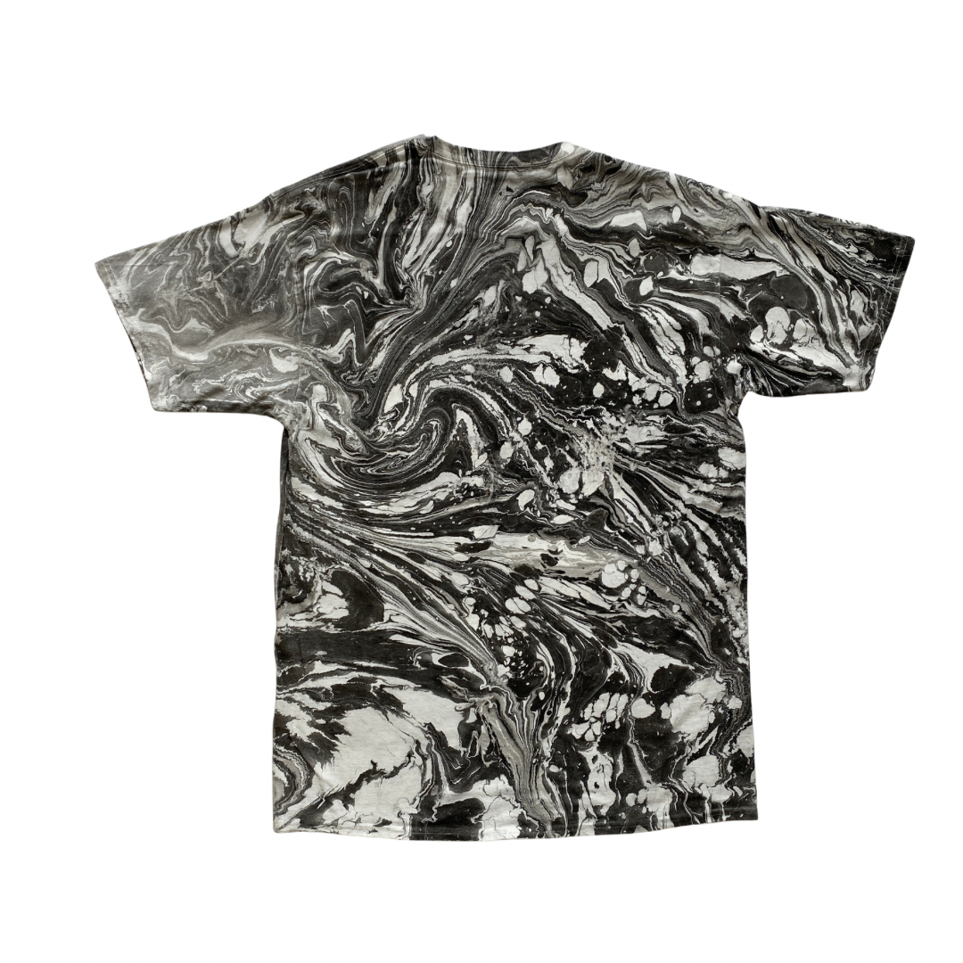 One-of-a-kind hand marbled artwork on unisex cotton T.