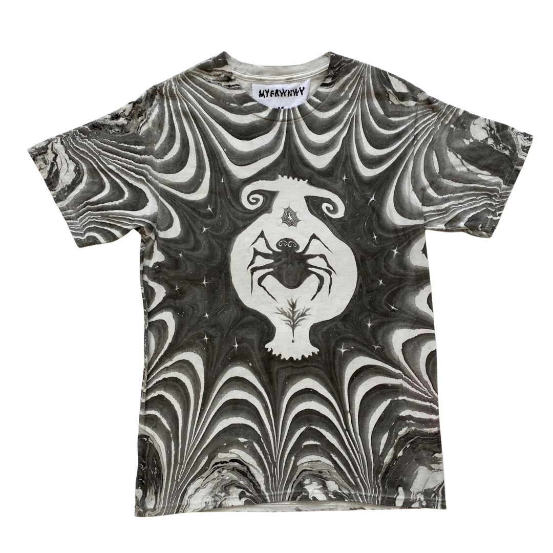 One-of-a-kind hand marbled artwork on unisex cotton T.