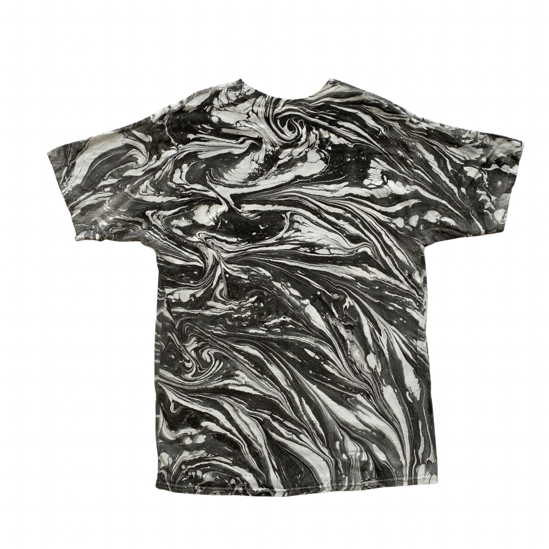 One-of-a-kind hand marbled artwork on unisex cotton T.